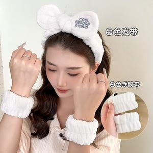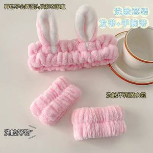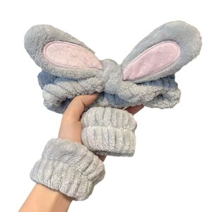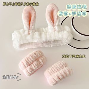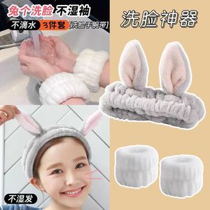 かわいいぬいぐるみのウサギの耳の顔を洗って髪を束ねます。手首に防湿袖の神器をつけます。
