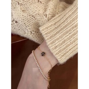 四叶草手链:钛钢+滴釉/紫色花朵手链:水钻+钛钢