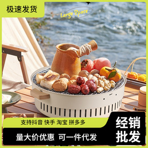 囲炉裏でお茶を煮ます。屋外でキャンプします。