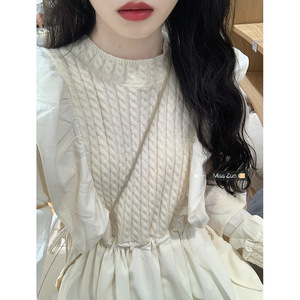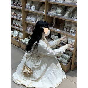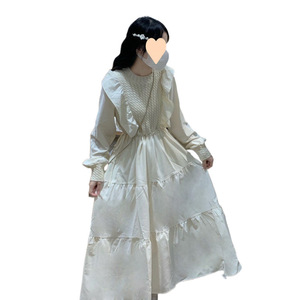 優しく腰を収めてワンピースの女性の秋冬の新型のハスの葉の辺はやせています。