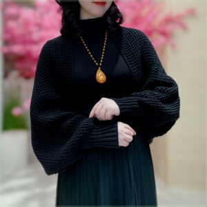 新型秋冬ニット毛糸マフラーストールは保温外に長袖ニットカーディガンをかけることが多いです。