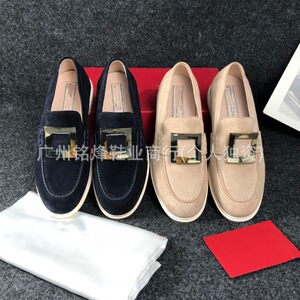 圆头绒面乐福鞋复古英伦风金属扣单鞋舒适休闲时尚百搭耐磨透气女