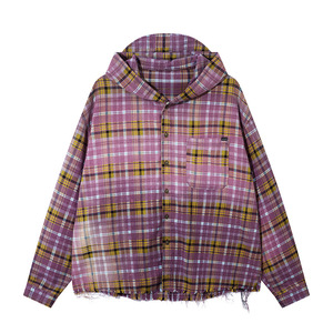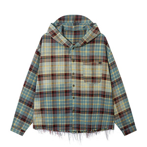 外国貿易のメンズアメリカのレトロなグラデーションの格子のフリンジデザイン感のシャツの男女のゆったりしている帽子のシャツの秋のファッション