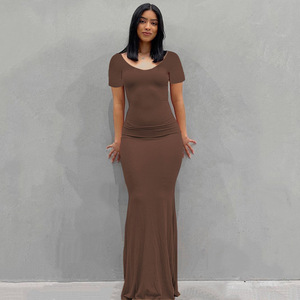 2022年 カーダシアン風 スキムズ ワンピース カジュアル スリムフィット キャミソール ホームウェア ロングワンピース 半袖
