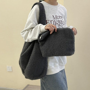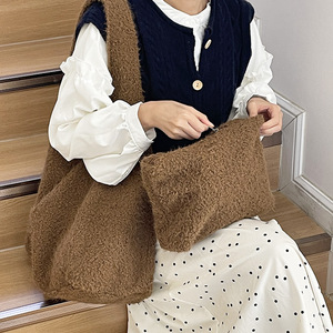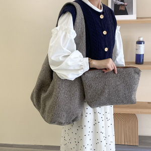 韓国版ins秋冬新作ラシャ大容量女性トートバッグ通勤風怠惰風シングル肩脇下バッグ