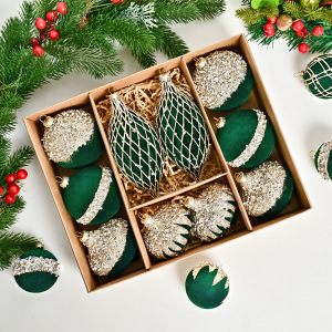 クリスマスの装飾の手描きのダイヤモンドの高級な軽豪華な植毛ボール10PCS-異形の手描きのダイヤモンドの植毛ボール
