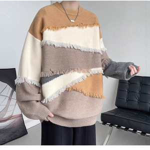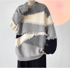 设计感流苏软糯针织衫毛衣男加肥大码宽松潮牌秋冬慵懒风百搭线衣