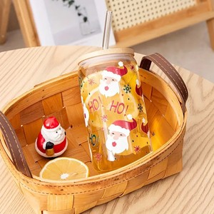 サンタクロースグラス + 竹蓋 + 曲面ガラスストロー (カートンパールコットン包装)
