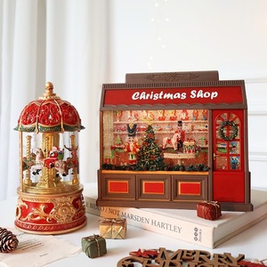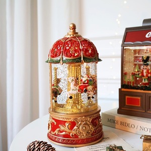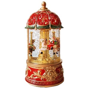 出口欧洲微景观自动飘雪圣诞音乐盒旋转木马水晶球女友礼物八音盒