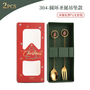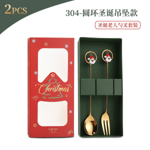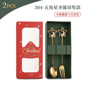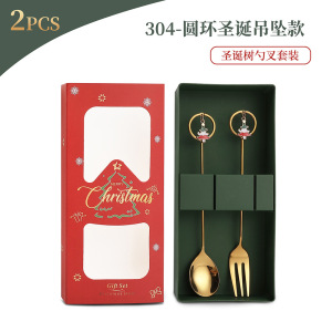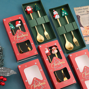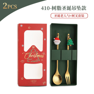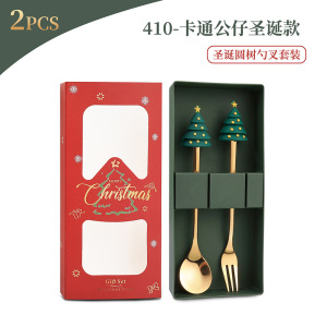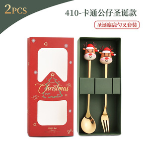 クロスボーダークリスマスカトラリーセット漫画雪だるま人形スプーンクリエイティブクリスマスデザートスプーンフォークギフト2点セット