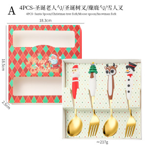 タイプB/サンタスプーン/鹿フォーク 2本セットC【ゴールド】