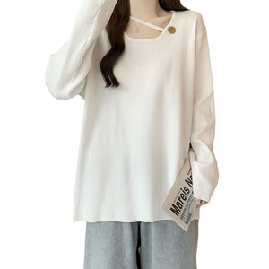 300斤の大きいサイズの婦人服の秋の長袖のtシャツの女性の新型の太っているmmのゆったりしている腹の底のシャツの百合は上着をつなぎ合わせます。