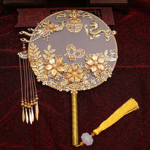中国式の結婚式の秀禾の顔の団扇の震え音の赤い本の新婦の結婚する手は花の古風をささげて結婚します。
