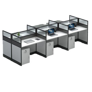 スクリーンワークステーション グレーと白のカラーマッチング 2/4/6人用ワークデスク オフィスワークステーション スクリーンパーティション オフィスワークステーション