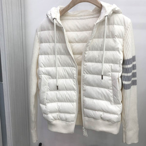 TB秋冬灰色连帽羽绒服拼接针织袖白鸭绒休闲百搭轻薄显瘦短款外套