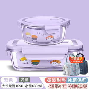 高ホウ素シリコンガラス弁当箱電子レンジ保冷箱冷蔵庫保冷碗保温布付き弁当箱学生弁当箱