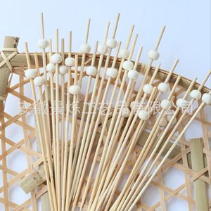 直径6x7mmの丸玉、ベージュビーズ、レッドビーズ、使い捨て装飾竹串、フルーツ串、工場直送、100個