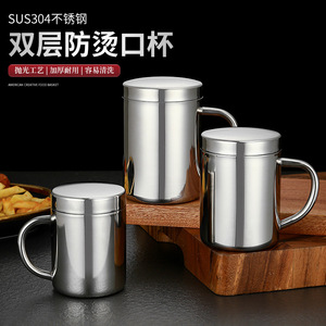 メーカー直販マグカップ304ステンレス二重口カップハンドル付き学生幼稚園児童コップ