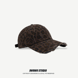 キャンバス リップド ヒョウ ベースボール キャップ - ブラウン