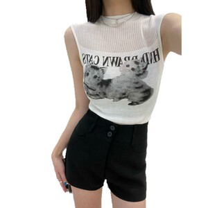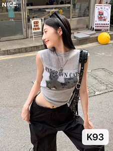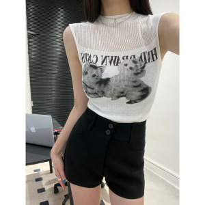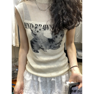背心女2025新款春韩系小个子卡通提花设计感小众无袖镂空针织上衣