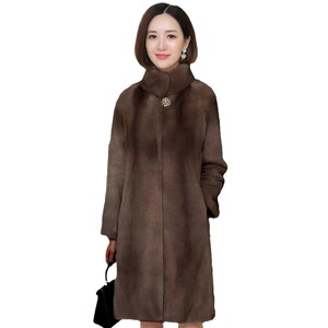 秋冬の新型の毛皮のコートの女性の中の長いタイプはミンクの毛のミンクの女性の服をまねてやせている立襟のコートの中高年を現します。