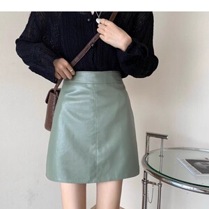ショートスカートの黒い韓国版の高腰はやせています。レトロなスカートの半身のスカートの女性の秋冬の皮のスカートの新型のファッションです。