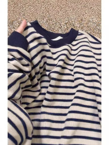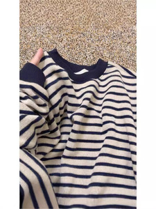 春秋装新款条纹卫衣女薄款复古无帽休闲宽松圆领学生长袖上衣