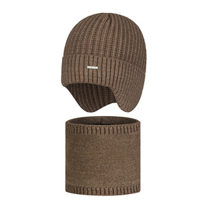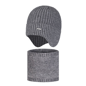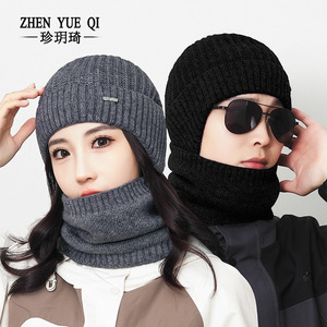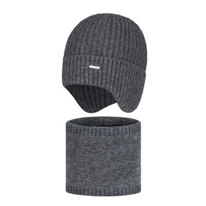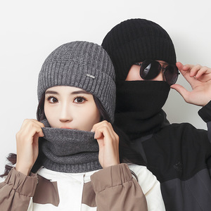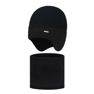 Fewk冬の新型大版耳保護ニット帽男性女性とベルベットが保温マフラーの2点セットの毛糸帽に乗っている