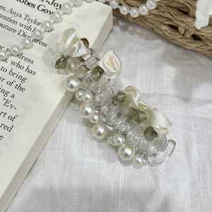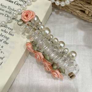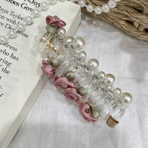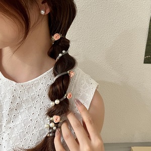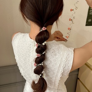 新しい甘さのバラのビーズの電話線の髪輪のポニーテールの泡のお下げの神器は縄を編んで髪を刺します。
