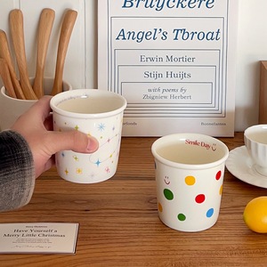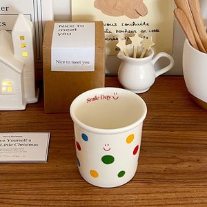 波点笑顔手握りカップかわいいins高颜値陶磁器コーヒーカップ朝食牛乳カップオフィス家庭カップ