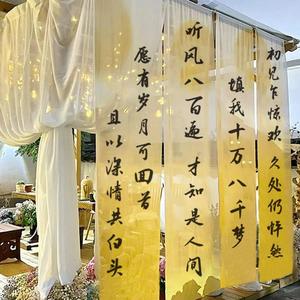 黄色のグラデーション透かしガーゼ 古風詩墨書ガーゼ 炉火に寄り添うお茶の煮沸用天井半透明ガーゼ 書道用透明ガーゼ