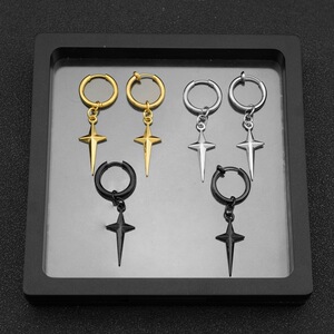 イヤリングアマゾン欧米新型チタン鋼円形耳ボタン韓国版ファッション個性高級ペンダント小衆イヤリング