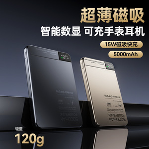 超薄型のマグセーフ磁気腕時計の無線充電宝10000mAhデジタル表示PD双方向充電モバイル電源