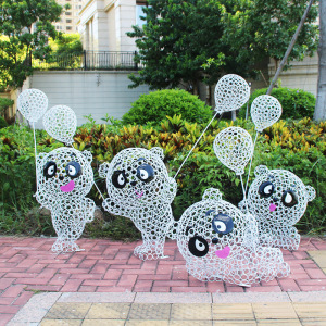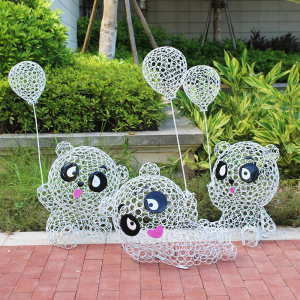 屋外の庭園の装飾の鉄芸のパンダの置物の彫刻のステンレスの透かし彫りの熊の庭は景観の小品の装飾を配置します。