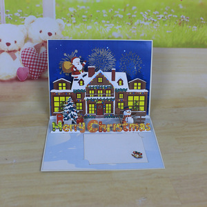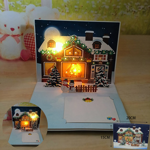 越境欧米アマゾン新年祝祭クリスマス3D立体グリーティングカード磁気制御ライト付き音楽再生ギフト