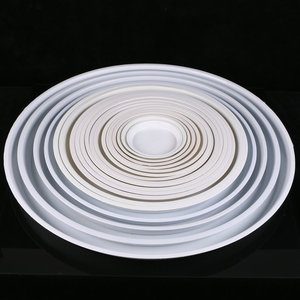 円形の植木鉢の平辺のトレーのプラスチックの底は多規格のプラスチックを支えて皿の底を受けます。