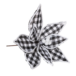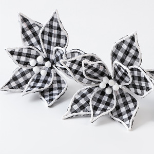 白黒の格子のクリスマスの花28cmのクリスマスの祝日の装飾の花の布の芸のシミュレーションの花の高級な祝日の木の装飾品
