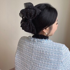 蓬蓬蓬紗波点の大きい蝶結びは型に従って挟みます。