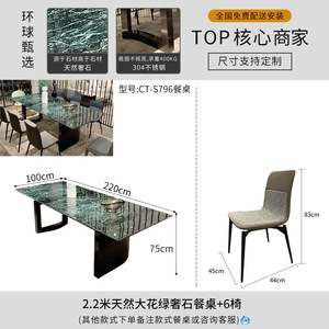2.2m +6 チェア大花グリーン高級ストーン ダイニング テーブル (偽物 1 つにつき 10 の罰金)