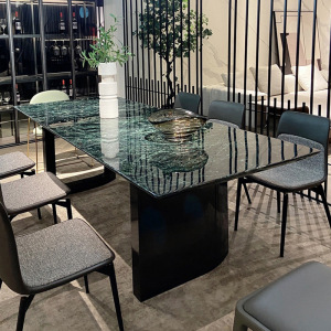 イタリア式の軽豪華なきわめてシンプルな大花緑天然豪華な石長方形の食卓の高級別荘のシンプルな家庭用大理石のテーブル