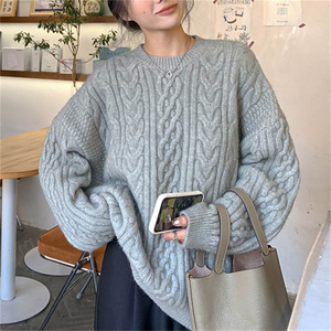 韓系優しい風麻花編みセーター女性2023秋冬厚手のモチモチニット女性のゆるい上着
