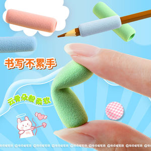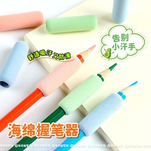 スポンジのペンを握る小学生は字を書いて指を保護します。