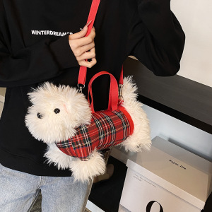 子供用バッグ秋冬新作可愛いぬいぐるみ服子犬カバン洋気親子少女毛羽立ち斜めショルダーバッグ小銭入れ