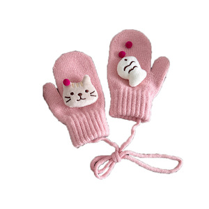 赤ちゃんのひもの袋の手袋の男女の子供の秋冬のかわいい漫画の屋外の保温の3歳の女の子の冬の手袋