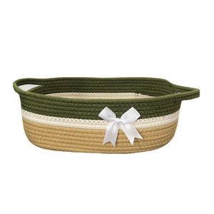 織りバスケット整理綿ロープバスケットハンドル付きかわいい綿バスケットプレゼント装飾バスケットペット玩具プレゼント収納バスケット