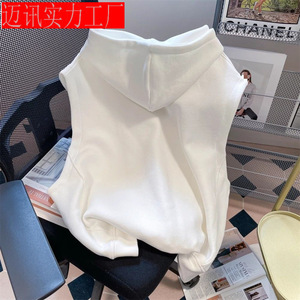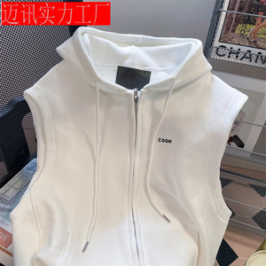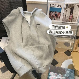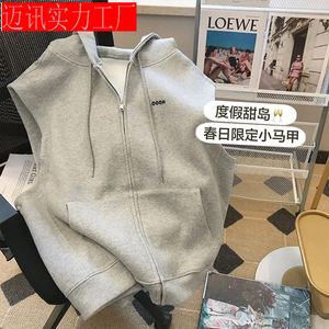 日系学院風フード付きベストカーディガン女性2024春秋工装レジャースポーツ馬挟み袖なし上着