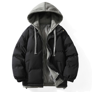 偽の2つの綿の服の冬の厚い保温のカップルのパンの服のゆったりしたファッションの偽の2つの綿の服の男性の帽子のコート