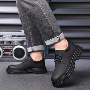 メンズシューズ 2025年秋新作 ソフトソール ワークシューズ メンズ トレンド カジュアル レザーシューズ 韓国風 イギリス風 ラウンドトゥ マーティンシューズ メンズ