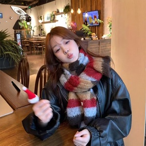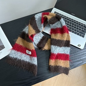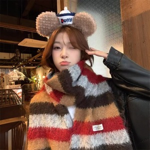 新型の衝突色のストライプの学院の風はウールのニットのマフラーの女性の秋冬の保温の百合のカップルの毛糸を含んで首を囲みます。