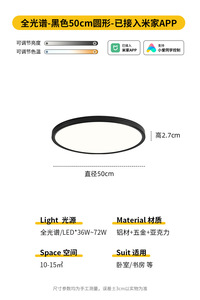フルスペクトル ラウンド ブラック 50cm Mijia Smart 36W
